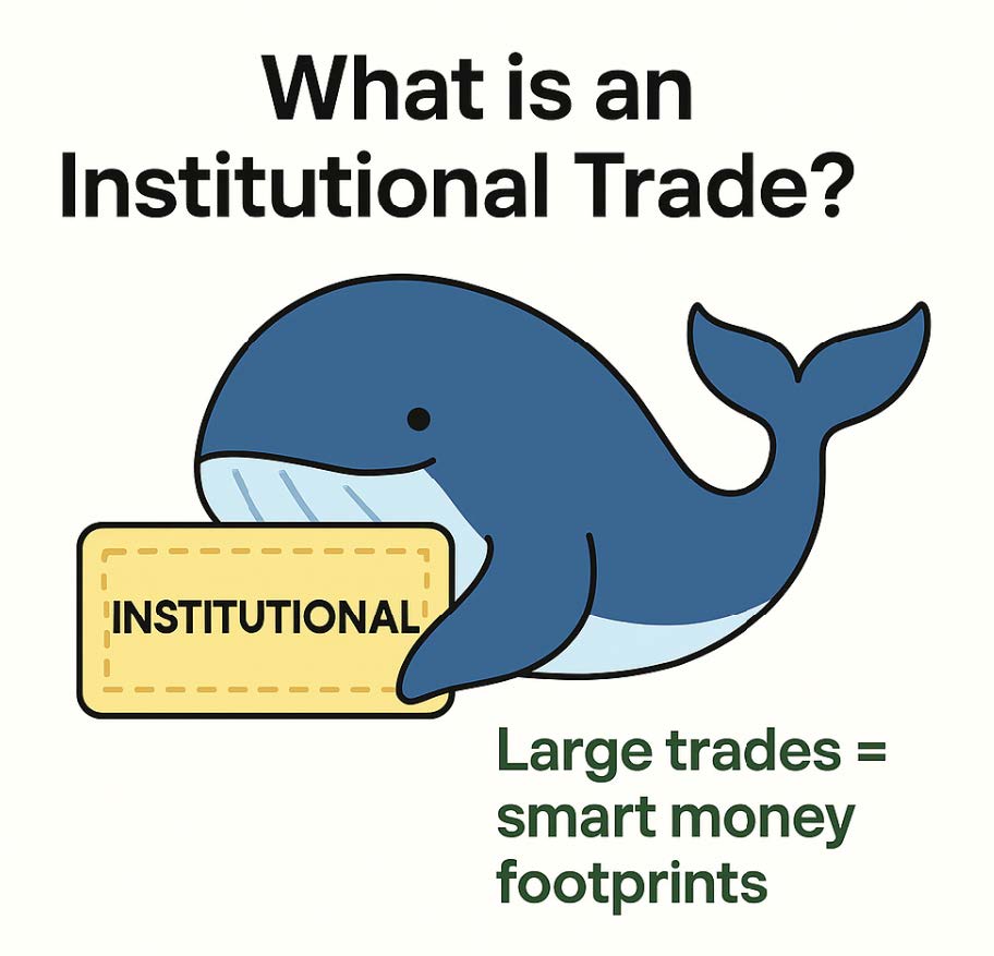 An institutional trade is a large options order placed by big players like hedge funds, pension funds, banks, or asset managers.